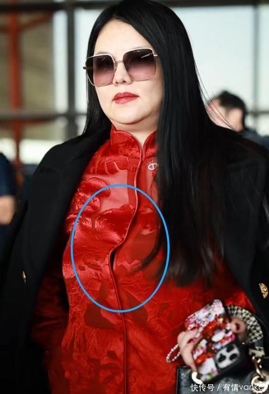 李湘这套红色中式套装确实很出彩,但是明显尺码小了,李湘胸前的扣子都快要崩开了。
