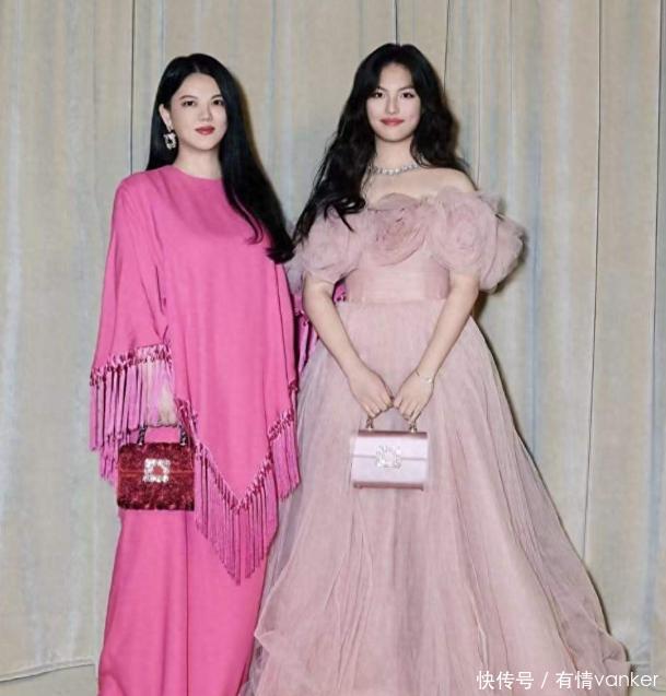 前阵子带着女儿王诗龄参加巴黎时装周时,母女俩的装扮是这样的。